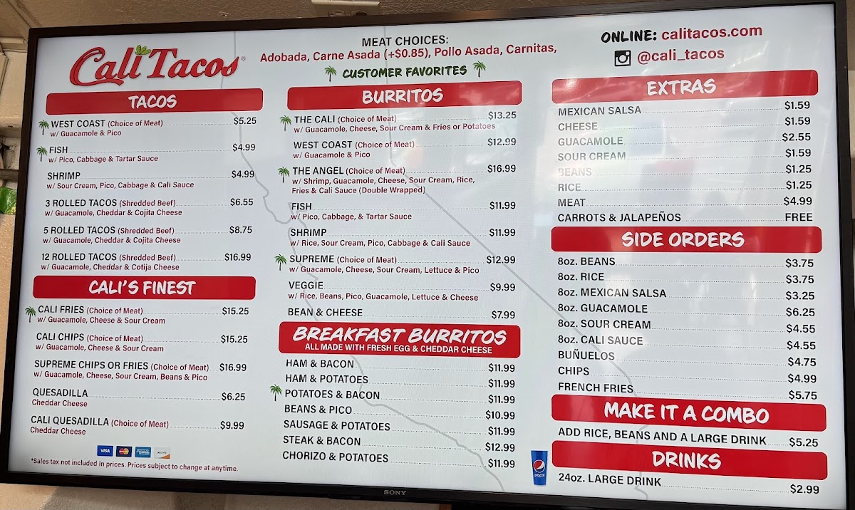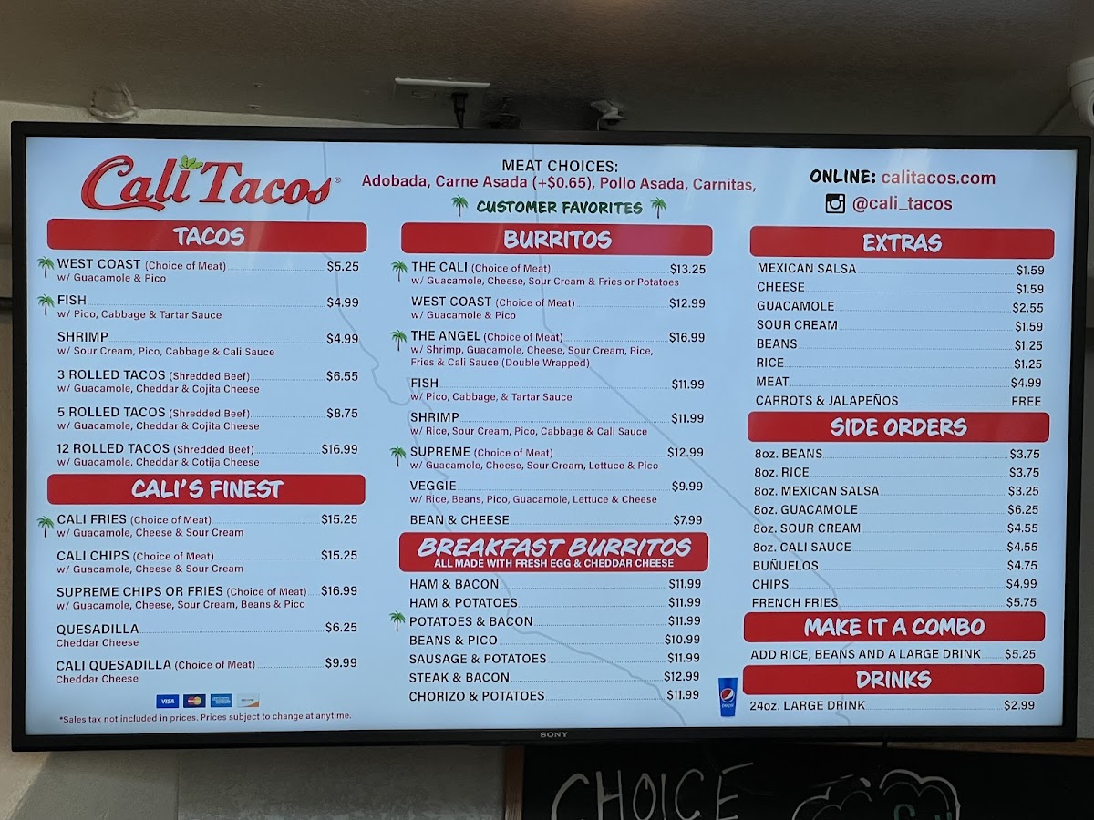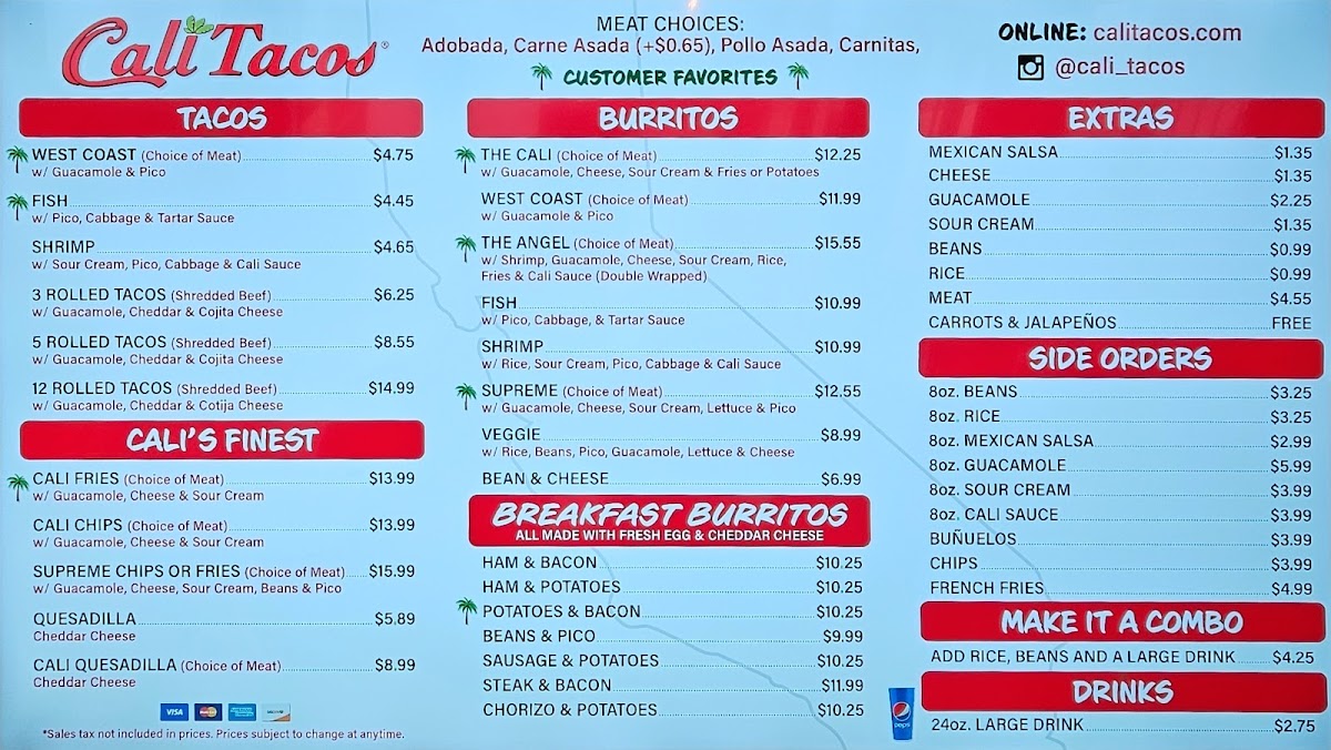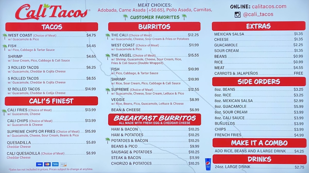 Cali Tacos Menu