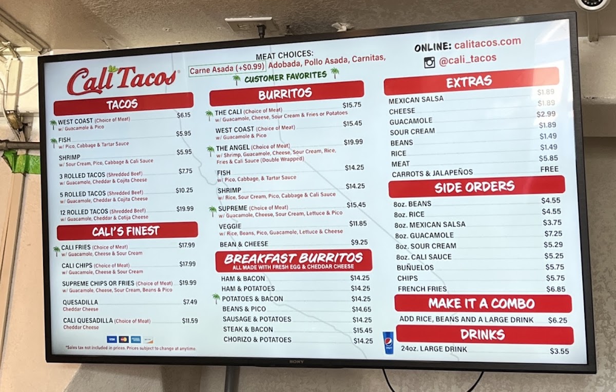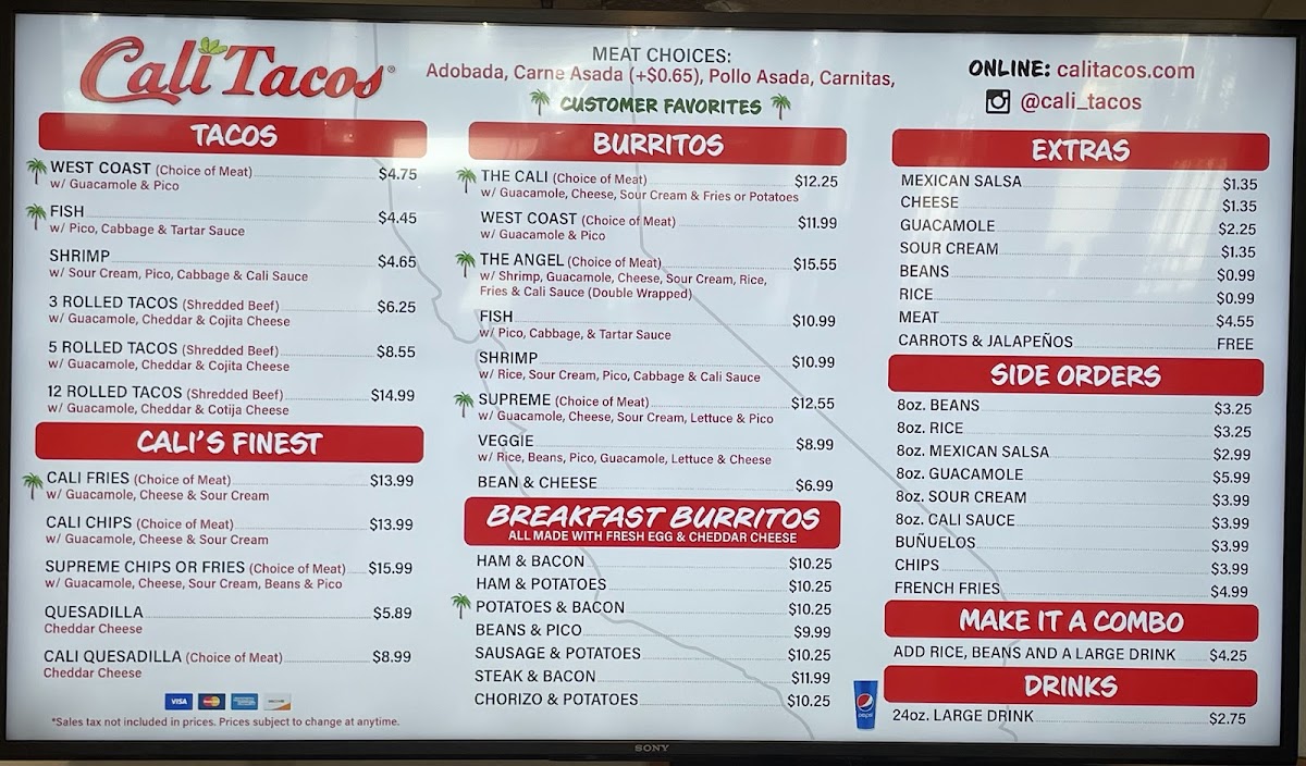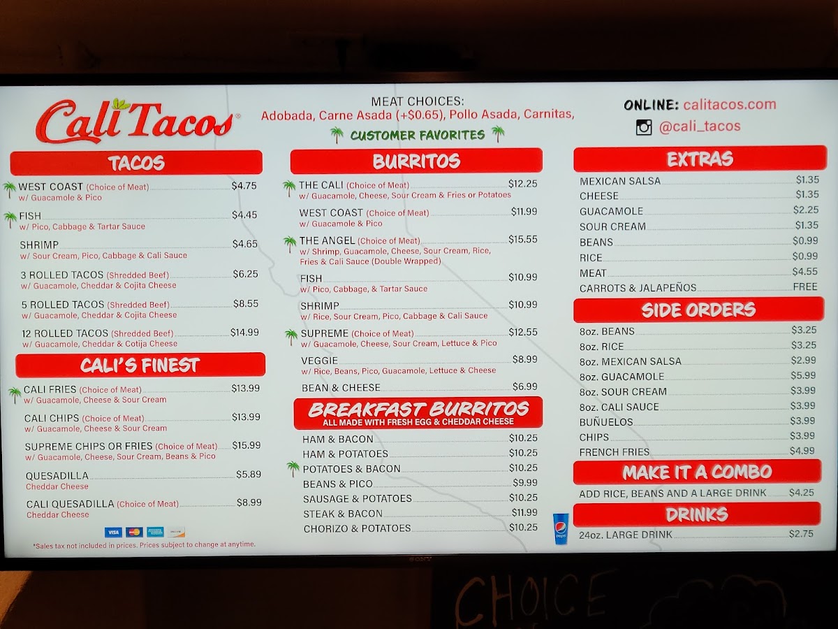 Cali Tacos Menu
